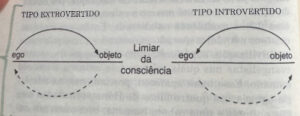 Gostaria de apresentar breve esboço do padrão das quatro funções na psicologia junguiana. Inicialmente, Jung distinguiu dois tipos comportamentais: o extrovertido e o introvertido. No extrovertido, a libido habitualmente fui conscientemente na direcão do objeto, mas existe uma ação contrária que volta em direção ao sujeito. Para o extrovertido, o avanco oculto na direção do sujeito é geralmente um fator Inconsciente. No caso do introvertido, ocorre o oposto, pois ele tem a impressão de que um objeto constantemente o esmagasse, de modo que precisa continuamente se afastar deste, uma vez que tudo está caindo sobre ele, é continuamente esmagado pelas impressões, mas não tem consciência de que está secretamente emprestando energia psíquica ao objeto através da sua extroversão inconsciente.